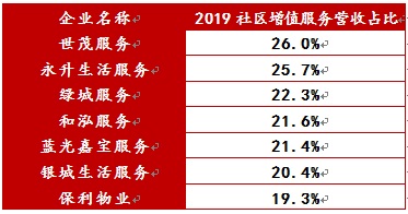 社區(qū)增值服務(wù)占營(yíng)收比例靠前的企業(yè)