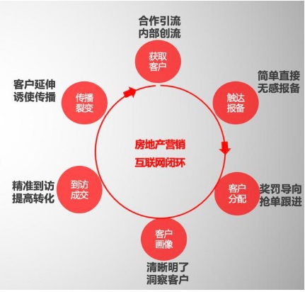從獲取客戶、觸達(dá)報(bào)備、客戶分配、客戶畫像、到訪成交、傳播裂變等六大環(huán)節(jié),打造營(yíng)銷的閉環(huán)管理,用線下和線上有機(jī)結(jié)合,使得客戶資源價(jià)值最大化。