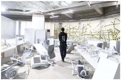 背投電腦屏幕,翻蓋手機(jī)等90年代盛行的電子產(chǎn)品,讓人置身一個90年代辦公室的考古現(xiàn)場,這是由藝術(shù)家朱敬一與朱濱共同打造的互動空間“打破傳統(tǒng)”,藝術(shù)家模擬了一個90年代設(shè)計建造但在當(dāng)下已經(jīng)破敗不堪的辦公室。