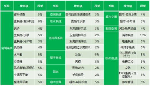 ·現(xiàn)場復(fù)檢:開業(yè)后6個月進行復(fù)檢,對初檢結(jié)果進行復(fù)查銷項,并檢測初檢階段不具備檢測條件的項(例如由于采暖季、供冷季差異需延至6個月節(jié)點進行檢測的項目),進行再次評分。