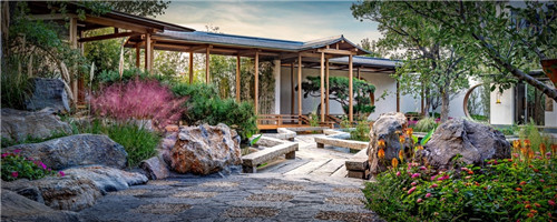 以宋代山水美學(xué)為藍(lán)本,通過對(duì)江南建筑藝術(shù)形態(tài)的提取,翡翠西湖在設(shè)計(jì)中遵循"六制九禮十二韻"的設(shè)計(jì)理念,人們走進(jìn)園區(qū),宛如完成一次南北方的穿越。門、廊、榭、亭、臺(tái)、院六大場(chǎng)景打造,深度融入景觀園林設(shè)計(jì)之中,使得人們流連其中,感受空間語境的情感表達(dá)。