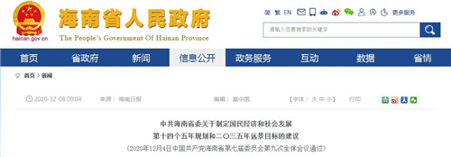 中共海南省委關(guān)于制定國(guó)民經(jīng)濟(jì)和社會(huì)發(fā)展第十四個(gè)五年規(guī)劃和二〇三五年遠(yuǎn)景目標(biāo)的建議