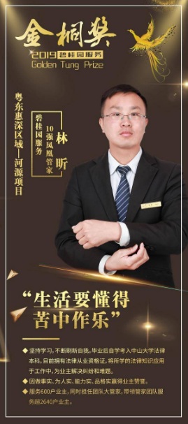 “即使工作再忙,學習的勁頭也不能丟,我如愿考取了中山大學法律本科專業(yè),工作之余,能用自己所學的知識為業(yè)主解決生活難題,我覺得我所做的一切都很有意義!