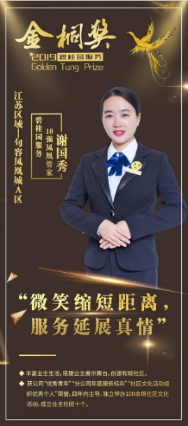 “碧桂園社區(qū)是個大家庭,也是個大舞臺,生活在這里就要熱熱鬧鬧的,組織300余場社區(qū)文化活動,協(xié)助創(chuàng)辦10個業(yè)主社團,每一次都能得到業(yè)主高度支持,在業(yè)主的肯定中,我實現了自己的價值!