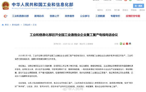 萬眾一心抗擊疫情,11日,工信部召開企業(yè)復工復產電視電話會議指出,疫情發(fā)生以來,中小企業(yè)受疫情的影響最大,支持中小企業(yè)發(fā)展,對于穩(wěn)定社會預期、緩解社會焦慮具有重要作用。會議要求加大對中小企業(yè)的資金支持等政策措施,加大對中小企業(yè)的幫扶力度。研究制定春節(jié)返鄉(xiāng)人員特別是熟練工人返崗復工的實施方案,采取分時上班、錯峰上下班、在線辦公、員工包車通勤等多種措施,指導做好員工防護。組織企業(yè)制定防疫方案,保證企業(yè)復工所需的防疫物資,細化防疫措施,確保員工身心健康。