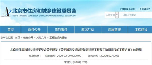 北京市住房和城鄉(xiāng)建設委員會關于印發(fā)《關于加強疫情防控做好建設工程復工協(xié)調(diào)調(diào)度的工作方案》的通知