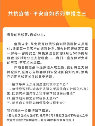 此前,自如已陸續(xù)發(fā)布多項(xiàng)針對(duì)疫情的應(yīng)對(duì)舉措,包括2月7日,武漢自如發(fā)出《致武漢自如客的一封信》,宣布減免武漢自如客2月50%的租金及2月全月服務(wù)費(fèi)等措施;開(kāi)放武漢自如驛供醫(yī)護(hù)人員居住,配合社區(qū)防控、協(xié)助相關(guān)政府部門(mén)收集租客返程信息,按時(shí)為業(yè)主支付租金等。