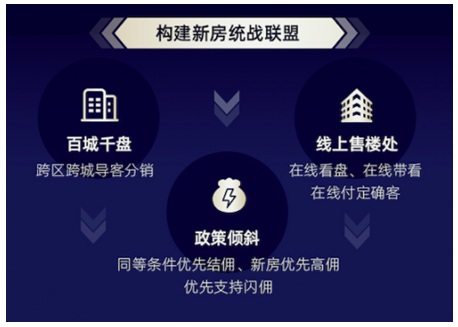 比如房多多新房的百城千盤,經(jīng)紀商戶輕松實現(xiàn)跨區(qū)跨城導(dǎo)客分銷。通過建立線上售樓處,商戶可以在線看盤、在線帶看、在線付定確客。同時還有同等條件優(yōu)先結(jié)傭、新房優(yōu)先高傭、優(yōu)先支持閃傭等政策傾斜,從而構(gòu)建新房統(tǒng)戰(zhàn)聯(lián)盟。