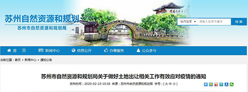 蘇州市自然資源和規(guī)劃局關(guān)于做好土地出讓相關(guān)工作有效應(yīng)對(duì)疫情的通知