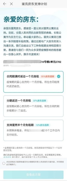 2月20日,蛋殼公寓面向廣大房東公布了“蛋殼房東支持計(jì)劃”,從最終的方案看,無(wú)論是合同結(jié)束后返還,還是分月份分期返還,在對(duì)房東沒(méi)有造成實(shí)質(zhì)性損失的情況下,一定程度也緩解了疫情對(duì)企業(yè)的沖擊 ;而另一邊,蛋殼公寓利用平臺(tái)優(yōu)勢(shì),用大力度的補(bǔ)貼反哺租客,實(shí)現(xiàn)了房東、租客、平臺(tái)三方共贏的局面。