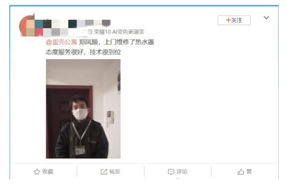 “我是真沒想到,這個時候還會有維修師傅上門”,志鵬說,杭州冬天本來就沒有暖氣,熱水器壞后他原本都做好了心理準(zhǔn)備,疫情期間就這么冷水洗臉、洗衣服,最怕的是沒法洗澡,現(xiàn)在總算不用擔(dān)心了。