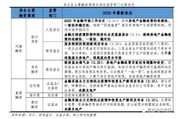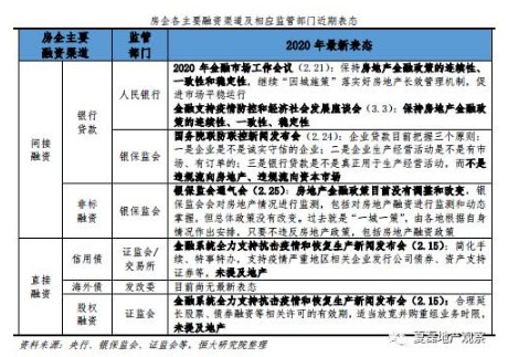 金融監(jiān)管部門(mén)近期頻繁強(qiáng)調(diào)要保持房地產(chǎn)金融政策的連續(xù)性、一致性和穩(wěn)定性。央行方面,2月21日,在2020年金融市場(chǎng)工作電視電話會(huì)議提出,要保持房地產(chǎn)金融政策的連續(xù)性、一致性和穩(wěn)定性,繼續(xù)“因城施策”落實(shí)好房地產(chǎn)長(zhǎng)效管理機(jī)制;2月22日,央行副行長(zhǎng)劉國(guó)強(qiáng)表示,在改革完善LPR形成機(jī)制過(guò)程中,要堅(jiān)決貫徹落實(shí)“房住不炒”定位和房地產(chǎn)市場(chǎng)長(zhǎng)效管理機(jī)制;3月3日,金融支持疫情防控和經(jīng)濟(jì)社會(huì)發(fā)展座談會(huì)強(qiáng)調(diào),要保持房地產(chǎn)金融政策的連續(xù)性、一致性、穩(wěn)定性。銀保監(jiān)會(huì)方面,2月25日,銀保監(jiān)會(huì)首席風(fēng)險(xiǎn)官肖遠(yuǎn)企表示,房地產(chǎn)金融政策目前沒(méi)有調(diào)整和改變,銀保監(jiān)會(huì)會(huì)對(duì)房地產(chǎn)情況進(jìn)行監(jiān)測(cè),包括對(duì)房地產(chǎn)融資進(jìn)行監(jiān)測(cè)和動(dòng)態(tài)掌握,但總體政策沒(méi)有改變。