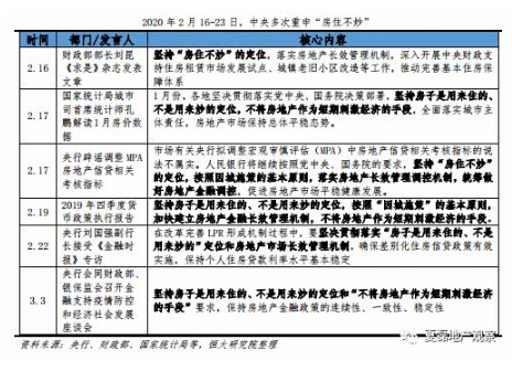 第一,多次重申“房住不炒”。在地方密集放松背景下,2月16至19日僅僅4天,財(cái)政部、統(tǒng)計(jì)局、央行等多部門(mén)重申“房住不炒”、“不將房地產(chǎn)作為短期刺激經(jīng)濟(jì)的手段”。