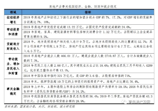 第五,增加信用創(chuàng)造、事關(guān)宏觀金融穩(wěn)定。一是我國(guó)金融體系以間接融資為主,房地產(chǎn)是最重要的抵押物。2018年末,抵押貸款超10萬(wàn)億的上市銀行的抵債資產(chǎn)中,房地產(chǎn)占比高達(dá)76.4%。二是無(wú)論房企項(xiàng)目投資還是居民住房消費(fèi),均需要信貸支持,天然具有杠桿屬性。2019年上半年,A股和港股上市房企的剔除預(yù)收賬款資產(chǎn)負(fù)債率為59.5%;2018年居民住房杠桿率(居民住房貸款余額/GDP)為34.2%。三是住房貸款是居民部門(mén)的主要負(fù)債,房地產(chǎn)貸款也是金融機(jī)構(gòu)的重要資產(chǎn)投向。2018年我國(guó)居民住房貸款余額占居民總負(fù)債的56.4%;2019年三季度,房地產(chǎn)貸款余額43.3萬(wàn)億元,占金融機(jī)構(gòu)各項(xiàng)貸款余額的28.9%。