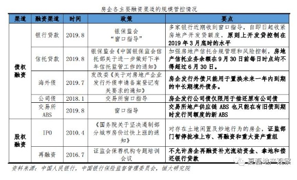 第二層次,調(diào)整房企各融資渠道的規(guī)模管控政策。自2019年5月23號(hào)文出臺(tái)以來(lái),房企各主要融資渠道規(guī)模均被嚴(yán)格限制。