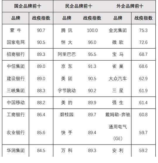 蒙牛、騰訊、金光集團(tuán)戰(zhàn)疫指數(shù)分列國企、民企、外企第一