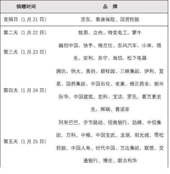 品牌捐贈(zèng)時(shí)間(1月21日-25日)制表:鐘宏武(中國社科院)、汪杰等(責(zé)任云研究院)