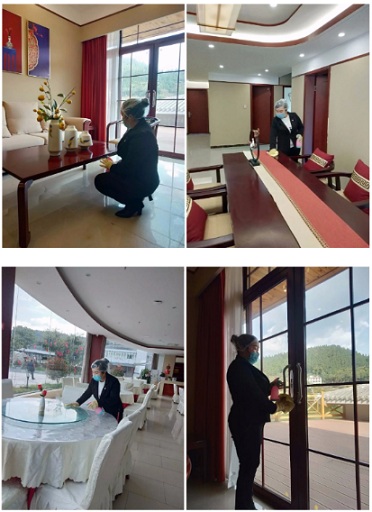 專門配置了體溫槍,所有員工每日上下班測(cè)量體溫,檢測(cè)結(jié)果記錄在案并上報(bào)。小伙伴生活區(qū)域進(jìn)行全面消毒,所有人上崗前徹底清洗消毒雙手、佩戴口罩、服裝干凈整齊、注意儀容儀表,保持好個(gè)人衛(wèi)生。