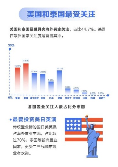 據(jù)鏈家海外2019年相關(guān)數(shù)據(jù)顯示,美國、日本和泰國最受海外買家關(guān)注,這三個國家關(guān)注度占整體海外買家關(guān)注接近一半左右。