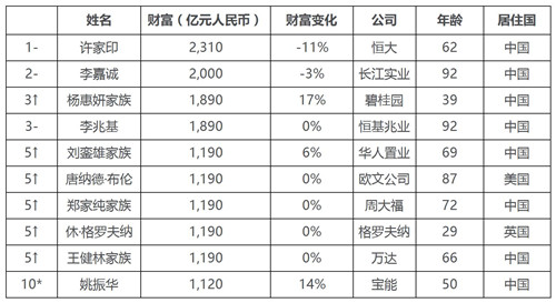 3月20日,胡潤(rùn)研究院今日發(fā)布《2020胡潤(rùn)全球房地產(chǎn)富豪榜》(Hurun Global Real Estate Rich List 2020)。上榜企業(yè)家主要財(cái)富來源于房地產(chǎn)領(lǐng)域,上榜門檻為十億美金,財(cái)富計(jì)算截止日期為2020年1月31日。