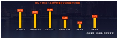 報告顯示,超六成經(jīng)紀(jì)人認(rèn)為疫情將在5月之前結(jié)束,經(jīng)紀(jì)人普遍對2月業(yè)績預(yù)期悲觀,,其中24.1% 的經(jīng)紀(jì)人預(yù)計今年2月所在區(qū)域的二手房交易量同比下跌將超過50%。46.6%的管理者有信心將損失控制在30%以內(nèi)。