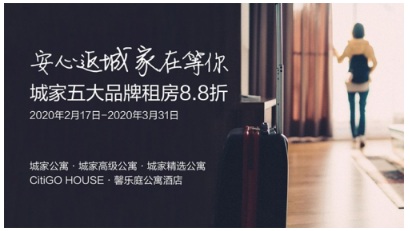 這次優(yōu)惠城家放寬了租期限制,擴大了參與門店,旗下5大品牌活動門店任選。2020年2月17日-2020年3月31日,不管你是長住還是短住,只要活動期內(nèi)在城家公寓、城家高級公寓、城家精選公寓、CitiGo HOUSE、馨樂庭公寓酒店簽約1-12個月租期均能享受合同租金8.8折優(yōu)惠!