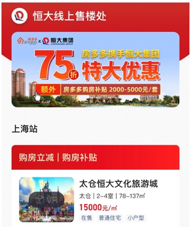 不僅如此,此次合作,房多多還將通過借助線上售樓處的直播講盤、VR看房等時下熱門推盤方式,助力華夏幸福加速去化。房多多在項目展示上下足了功夫,除文字、圖片信息外,VR全景、視頻直播、動態(tài)圖等,看房方式一個不少,力求助力客戶直觀、詳盡、準(zhǔn)確地線上看房,做出正確決策。 同時,房多多線上售樓處開辟專屬品牌館,客戶可以一站式瀏覽品牌樓盤以及最新的特價房源,在線進行咨詢和交易。近萬套特惠房的釋放成為平臺吸引流量的關(guān)鍵。