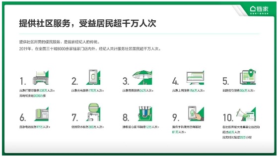 此外,在創(chuàng)新社區(qū)服務(wù)方面,鏈家于2018年在北京、上海和青島打造了“一站三隊(duì)”(“一站”為城市補(bǔ)給站,“三隊(duì)”分別為便民服務(wù)隊(duì)、社區(qū)共建隊(duì)、愛心公益隊(duì))的新型社區(qū)服務(wù)體系。鏈家經(jīng)紀(jì)人積極參與其中,深度參與社區(qū)的共建。