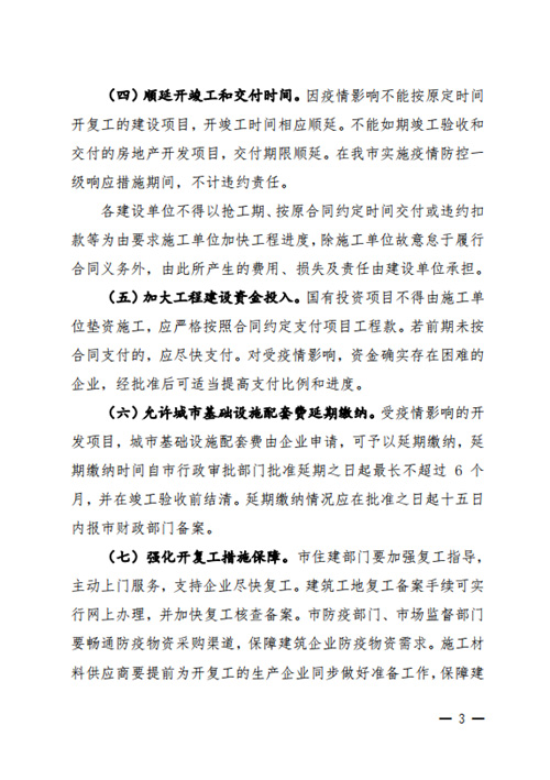 在順延開(kāi)竣工和交付時(shí)間方面,《通知》指出因疫情影響不能按原來(lái)時(shí)間開(kāi)復(fù)工的建設(shè)項(xiàng)目,開(kāi)竣工時(shí)間相應(yīng)順延。不能如期竣工驗(yàn)收和交付的房地產(chǎn)開(kāi)發(fā)項(xiàng)目,交付期限順延。在太原市實(shí)施疫情防控一級(jí)相應(yīng)措施期間,不計(jì)違約責(zé)任。
