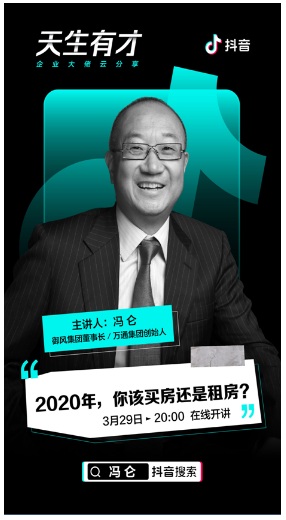 在這樣復(fù)雜的整體市場環(huán)境下,不管是有投資需求的購房者,還是有住房需求的年輕人,都很有必要思考一下這樣一個(gè)問題——“2020年,你該買房還是租房?”。對于大多數(shù)對未來決策心生疑云的普通人來說,也更迫切地需要行業(yè)專家的指點(diǎn)。而御風(fēng)集團(tuán)董事長、萬通集團(tuán)創(chuàng)始人馮侖,就在3月29日20:00-21:00,在抖音直播間深度聊了這個(gè)問題。