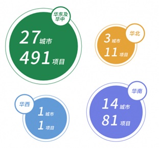 2019年12月31日,本集團訂約管理的物業(yè)所在城市及各城市項目數(shù)目: