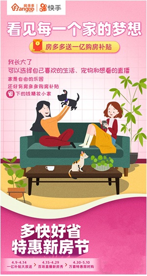近日,作為國內最大的在線房地產交易平臺的房多多,聯(lián)合國內知名短視頻平臺快手推出“多快好省特惠新房節(jié)”,啟動直播賣房。在4月9日-5月10日期間,房多多充分發(fā)揮平臺優(yōu)勢,攜手快手帶來百場賣房直播,攜手全國百強房企帶來全國萬套特惠房,同時攜手平臺百萬商戶送一億購房補貼。