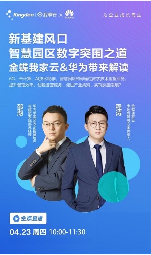 4月23日,金蝶我家云聯(lián)合華為推出《新基建風(fēng)口,智慧園區(qū)數(shù)字突圍之道》線上直播,更多行業(yè)大咖分享,分享園區(qū)及資產(chǎn)運(yùn)營企業(yè)如何通過數(shù)字化重塑園區(qū)運(yùn)營,打造智慧化、在線化、生態(tài)化空間服務(wù)能力,提升管理效率,創(chuàng)新運(yùn)營服務(wù),促進(jìn)產(chǎn)業(yè)集聚,實(shí)現(xiàn)企業(yè)突圍發(fā)展。