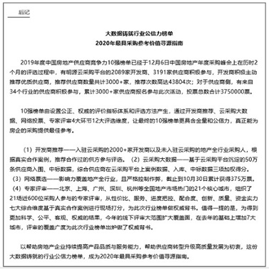 《2019年度中國房地產供應商競爭力10強行業(yè)報告》連載第六期