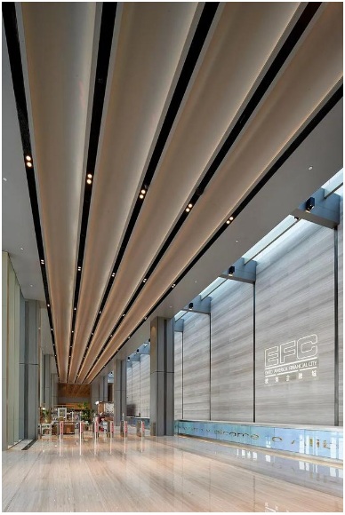 而整個(gè)EFC規(guī)劃了5個(gè)雙向6車道、約1000平米豪華轉(zhuǎn)盤落客區(qū),13米寬的大氣豪華雨棚,形成寫字樓中絕無(wú)僅有的超五星國(guó)際禮賓秩序。