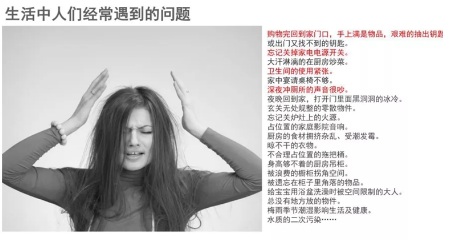 就住宅而言,首要需求是方便,其次是健康,還有環(huán)保舒適和美觀。我們都希望從整體上追求更高生活品質(zhì),更好的生活方式,更優(yōu)的生活態(tài)度。每個(gè)人生活中都有痛點(diǎn)問題,但可能因?yàn)榱?xí)以為常就忽略了。