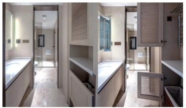 再比如說,衛(wèi)生間除了大家都知道的干濕分區(qū),我們也要考慮到毛巾的干燥、臟衣服的放置、洗手臺(tái)上化妝品的收納。此外,坐便器旁邊配高壓水槍,紙巾盒的處理等,同樣需要設(shè)計(jì)師花心思研究。