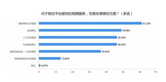 比如,消費(fèi)者接觸最多的幾個(gè)租期服務(wù)——保潔、搬家、維修。據(jù)《中國消費(fèi)者報(bào)》發(fā)起的《2020消費(fèi)者信賴的長租平臺(tái)滿意度調(diào)查》顯示,租期中,“保潔服務(wù)”、“維修服務(wù)”、“搬家服務(wù)”占比均在60%左右,領(lǐng)跑租期服務(wù)需求榜。說明,都市年輕人租住生活中已經(jīng)離不開租期服務(wù)。