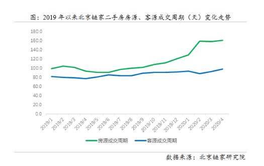 從市場情緒來看,目前北京二手房市場買賣雙方市場情緒較為平穩(wěn)。4月北京二手房房源成交周期環(huán)比拉長3天至161天,客源成交周期環(huán)比拉長5天至98天,買賣雙方成交周期均已達(dá)到歷史高位水平。