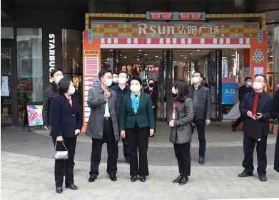 黃莉新(左三)一行調(diào)研走訪南京弘陽廣場