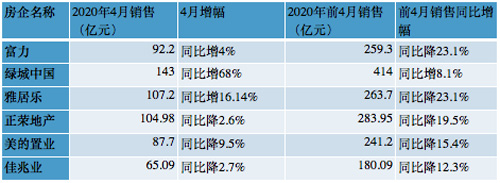 除前述龍頭房企外,包括富力、雅居樂、正榮地產(chǎn)、美的置業(yè)、佳兆業(yè)等多家房企陸續(xù)公布了4月銷售數(shù)據(jù)。根據(jù)觀點(diǎn)指數(shù)公布的2020年前4月房企銷售30強(qiáng)榜單,上述房企除綠城中國外,其余企業(yè)銷售均同比下降。