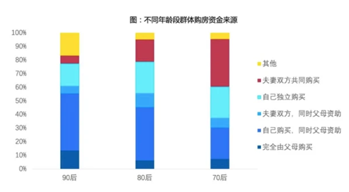 據(jù)調(diào)研發(fā)現(xiàn),90后購房群體中61.1%依靠于父母提供資金支持(包括完全由父母購買及部分靠父母資助),比80后群體高出5.4個百分點,而90后父母多為60、70后,而這兩代人已經(jīng)有一定的財富積累,在購置房產(chǎn)時,有能力對子女進行資助。