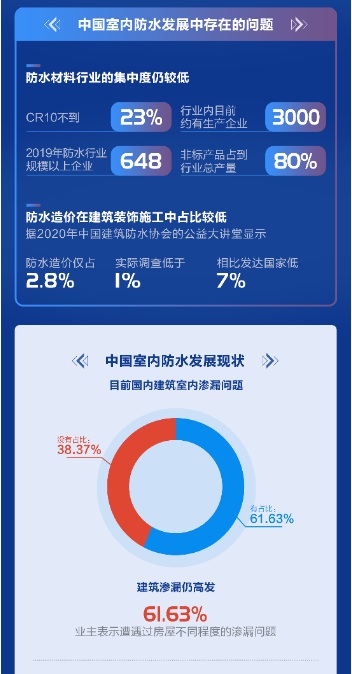 在網(wǎng)易家居華北主編張璐的白皮書介紹中,行業(yè)發(fā)展的現(xiàn)狀逐漸明晰。一方面行業(yè)還存在著集中度低,防水防潮規(guī)則不分,造價(jià)占比低,產(chǎn)品同質(zhì)化嚴(yán)重,專業(yè)施工工人短缺等一系列問題。但同時(shí),消費(fèi)者品牌的認(rèn)知度也在逐步提升,市場(chǎng)對(duì)于防水產(chǎn)品的專業(yè)溢價(jià)服務(wù)接受度也越來越高。未來,隨著行業(yè)存量房修繕比例逐漸增大,防水行業(yè)正在迎來全新的發(fā)展時(shí)期。