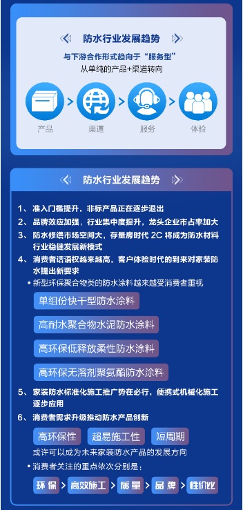 近幾年隨著新生消費(fèi)群體的崛起,市場(chǎng)、消費(fèi)習(xí)慣的變化也時(shí)刻逼迫著企業(yè)求變。新興消費(fèi)者想要買的不只是產(chǎn)品,更是一個(gè)家。他們青睞更加方便快捷的購(gòu)物體驗(yàn)、看好一站式家居服務(wù)。因此,在新趨勢(shì)、新消費(fèi)下,防水產(chǎn)業(yè)鏈上下游也積極協(xié)作起來,力求為消費(fèi)者提供完美的服務(wù)閉環(huán)。