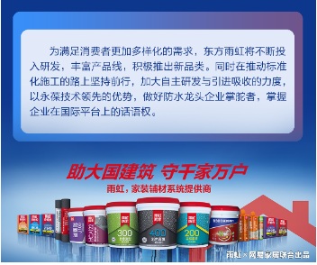 業(yè)之峰是裝企中的佼佼者,也是東方雨虹的戰(zhàn)略合作伙伴。業(yè)之峰董事長(zhǎng)張鈞表示,密切的合作源于雙方對(duì)自身產(chǎn)品的堅(jiān)定和信念。在他看來,三流企業(yè)做產(chǎn)品,二流企業(yè)做品牌,一流企業(yè)要做的是引領(lǐng)標(biāo)準(zhǔn)。引領(lǐng)是頭部企業(yè)的擔(dān)當(dāng)和責(zé)任,而業(yè)之峰和東方雨虹都是這樣的企業(yè)。