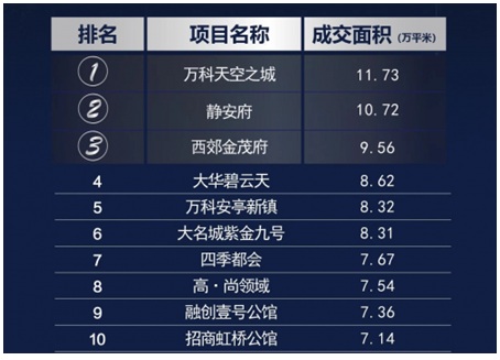 <注:2019年上海樓盤銷售面積榜,數(shù)據(jù)來源于克而瑞>