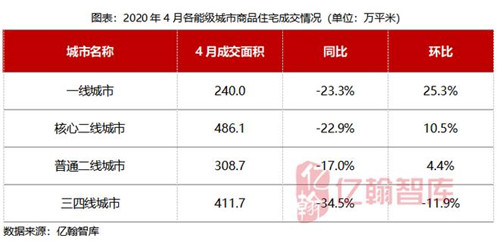 據億翰智庫分析報告,從監(jiān)測的40城數據來看,4月全國商品住宅銷售面積為1446.5萬平米,同比下跌25.6%,與上月持平,環(huán)比上漲3.7%,4月住宅市場繼續(xù)保持回暖態(tài)勢。