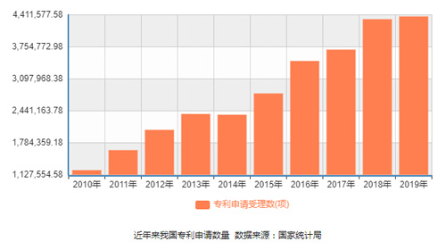 近年來我國專利申請(qǐng)數(shù)量 數(shù)據(jù)來源:國家統(tǒng)計(jì)局