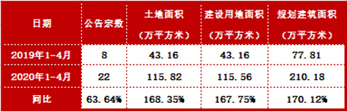 此外,4月新增預(yù)申請(qǐng)公告用地2宗,截止4月30日預(yù)申請(qǐng)公告用地10宗,規(guī)劃建筑面積共計(jì)190.47萬(wàn)平方米 。