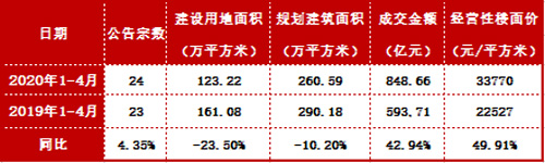 2020年1-4月,北京市成交土地金額為848.66億元,同比增長(zhǎng)42.94%,占2019年全年的50.75%。
